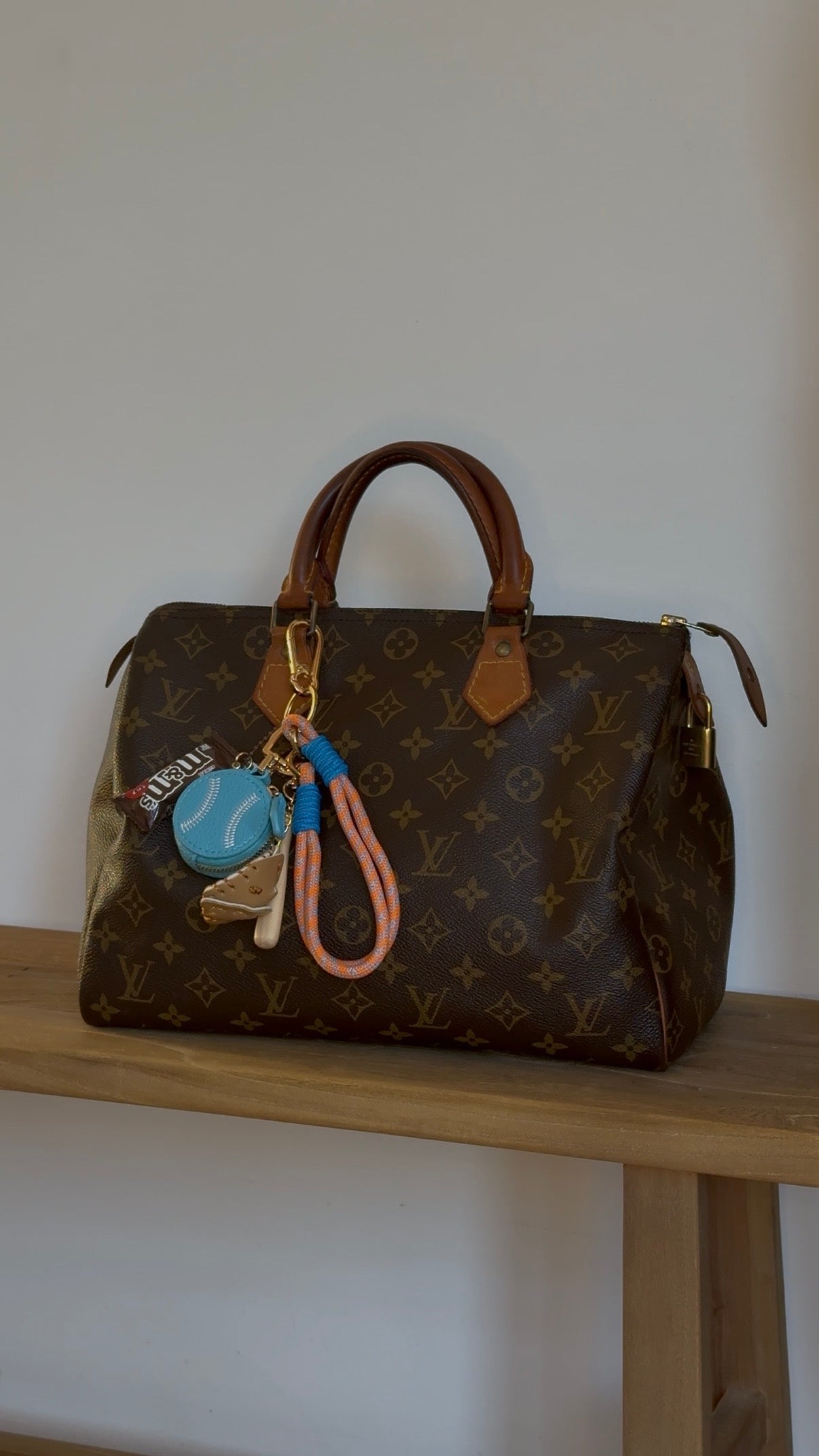 Home Run Treats Charm is made for sporty souls with a sweet side. It includes a mini baseball glove, a bat, a leather baseball-shaped pouch and a tiny M&Ms bag for a cute and quirky finish. Dynamic, fun and full of character, it stands out on any bag or keychain. Shipped as pictured.
